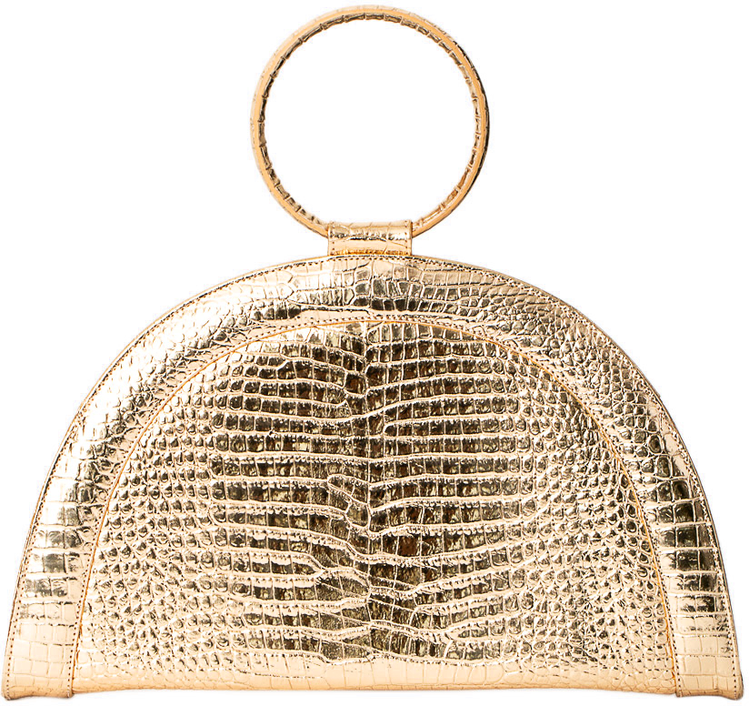 AMELIE Gold Croco Leather Bag With Heart Attached